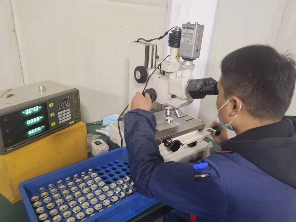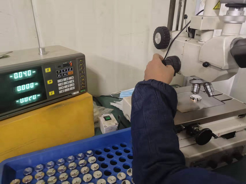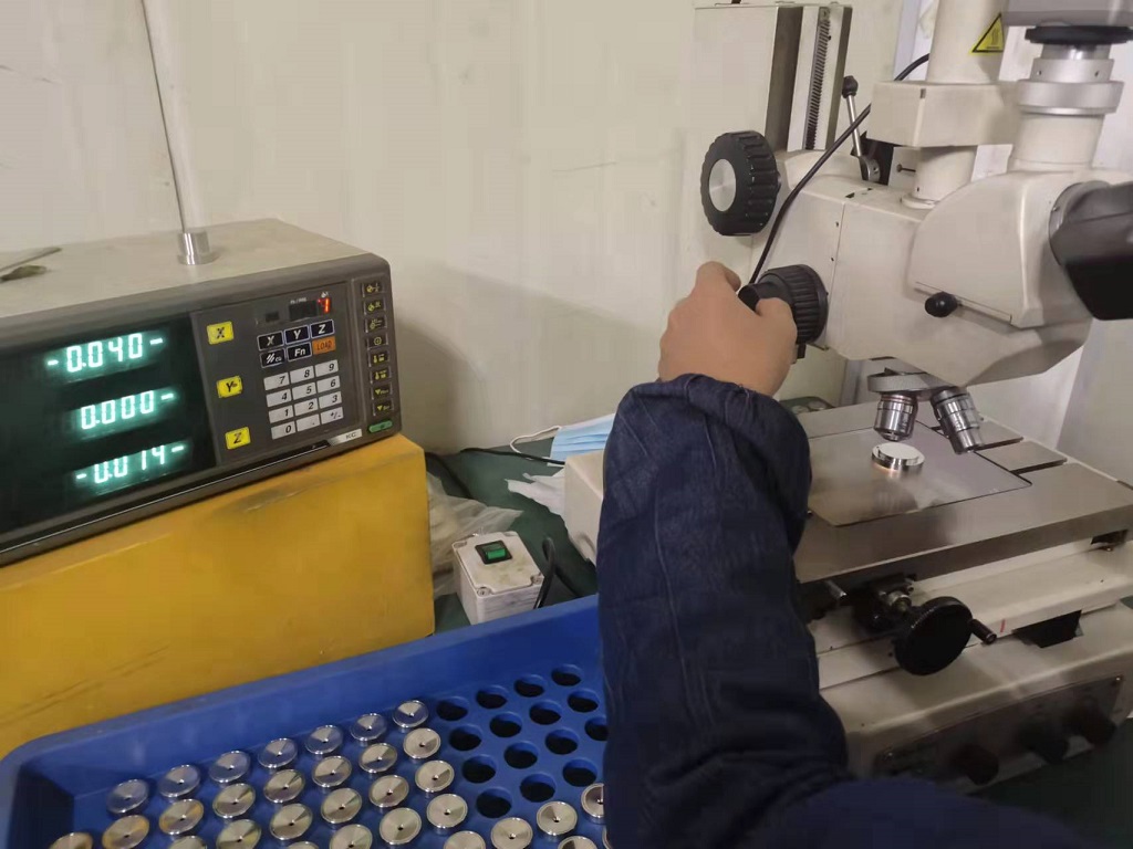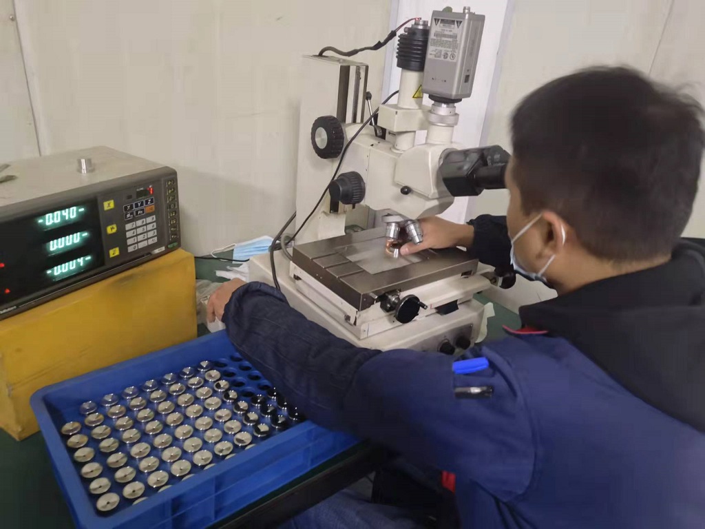 常州吉尔专业从事高精度微孔加工,钻孔加工,小孔加工厂家,主营产品:熔喷喷丝板、化纤喷丝板、氨纶喷丝板、双色喷丝板、异形孔喷丝板、纺粘喷丝板等各种规格喷丝板和各种喷嘴、油嘴和气嘴等欢迎您来电咨询!图为我们检测人员正在进行0.04mm微孔喷丝板检测。